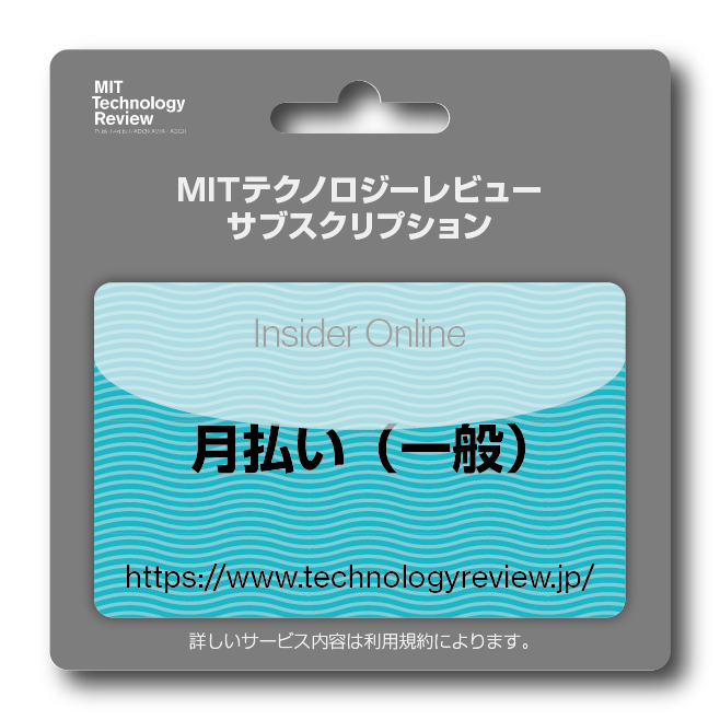 「月払いプラン(一般)」は、MITテクノロジーレビューの会員資格「Insider Online」を取得するための月払いコースです。すべてのニュースを期間、回数の制限なく利用できます。