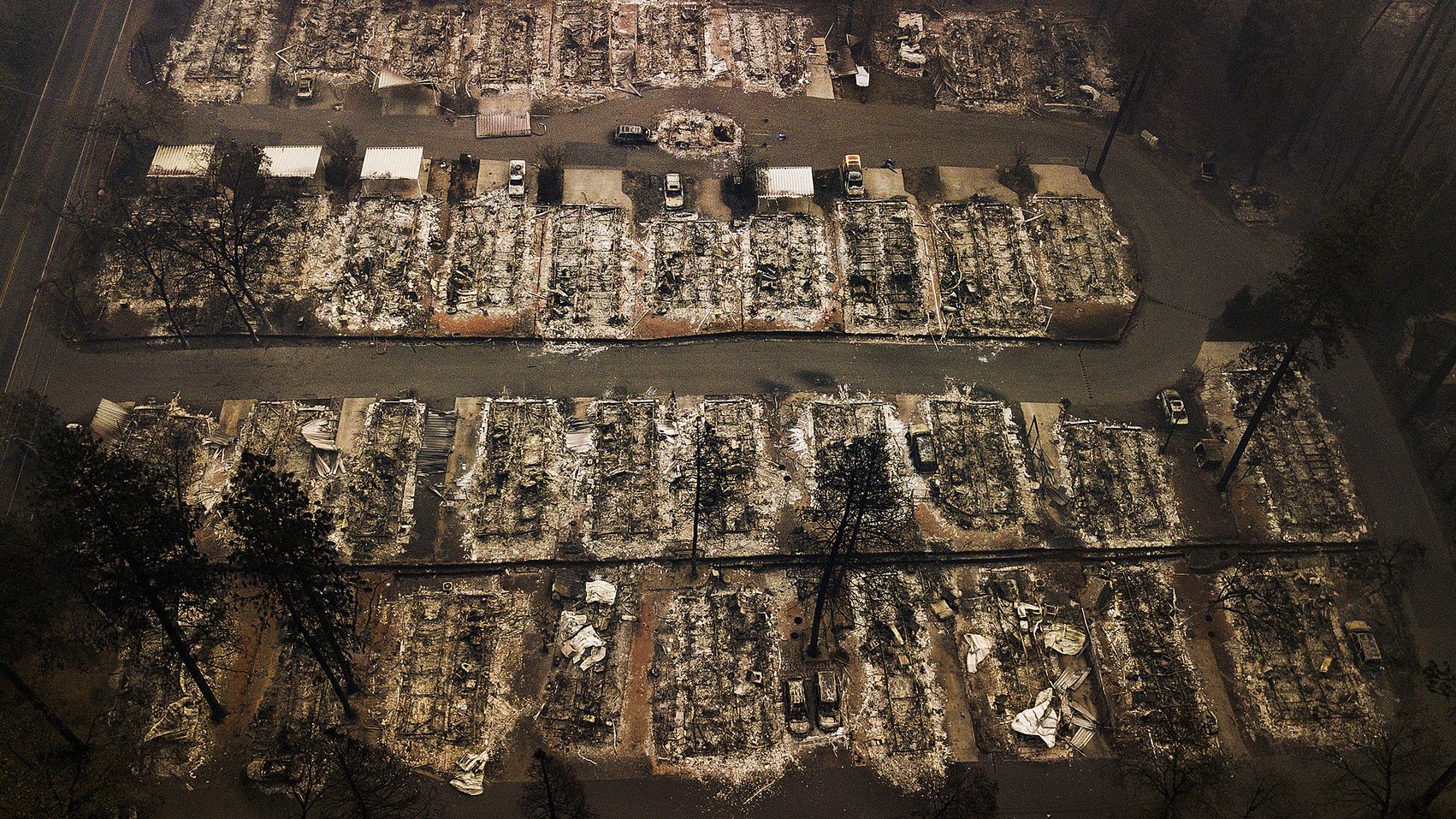 カリフォルニア州パラダイスにある家屋のおよそ9割が焼失。火災前には2万6000人が住んでいたが、現在の住人はわずか3000人と推定されている。