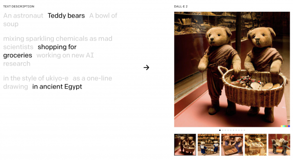 今年に入り、オープンAIはさらに高精度な画像生成を実現する「DALL-E(ダリ―)2」を発表した。DALL-E2による作例はあまりにも現実離れしているように見える。